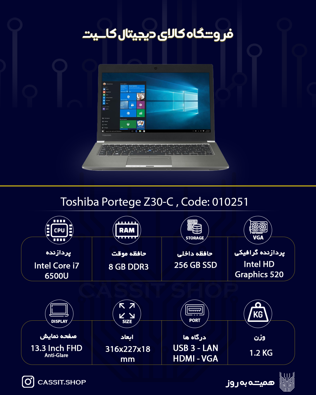 اولین نفری باشید که دیدگاهی را ارسال می کنید برای “لپتاپ Toshiba مدل Toshiba Portege Z30-C، صفحهی نمایش 13.3 اینچی FHD، پردازنده Intel Core i7 6500، رم 8GB، حافظه 256 GB SSD، گرافیک Intel HD Graphics 520| استوک A++” لغو پاسخ