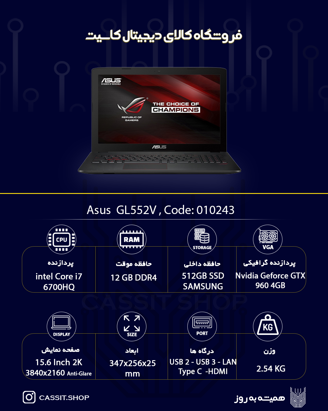 اولین نفری باشید که دیدگاهی را ارسال می کنید برای “لپتاپ ASUS مدل Asus GL552V ، صفحهی نمایش 15.6 اینچی، پردازنده ، Intel Core i7 6700HQ ، رم 12GB DDR4، حافظه 512GB SSD SAMSUNG، گرافیک Nvidia Geforce GTX 960 4GB | استوک A++” لغو پاسخ