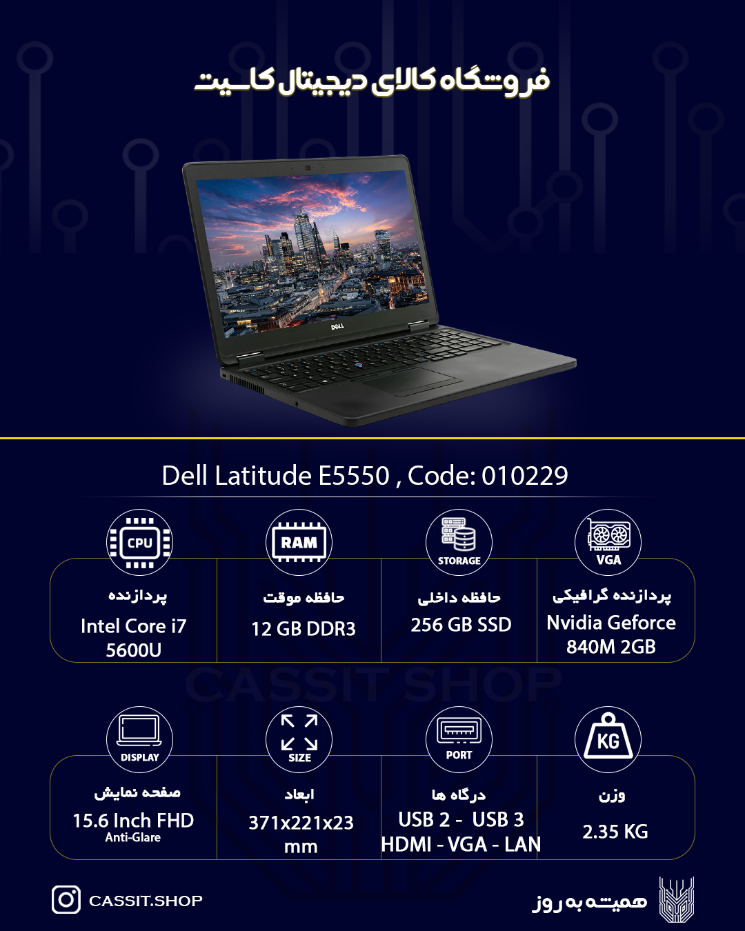 لپتاپ Dell Latitude E5550 از سری لپتاپهای تجاری و صنعتی شرکت Dell است که برای کاربران حرفهای، سازمانی و اداری طراحی شده است. این مدل به دلیل کیفیت ساخت بالا، سختافزار مناسب و قابلیت ارتقا، گزینهای قابلتوجه محسوب میشود.