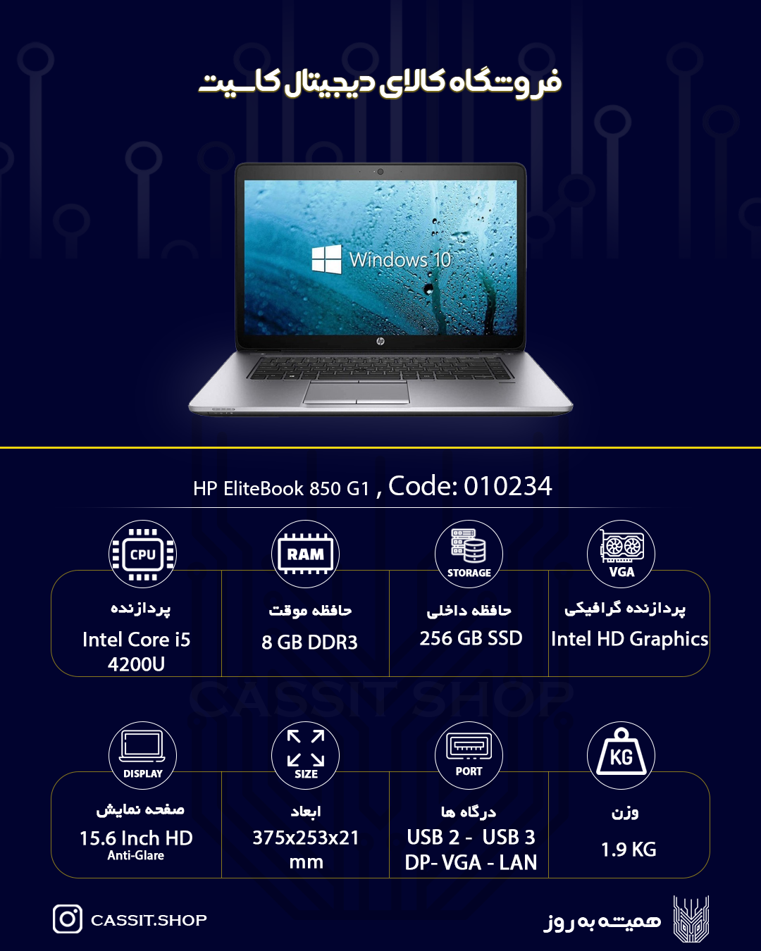 مشخصات کلیHP Elitebok 850 G1- CPU Intel Core i5 4200U - SSD 256 GB - RAM 8 GB DDR3 - VGA Intel HD Graphics - 15.6 inch Display
