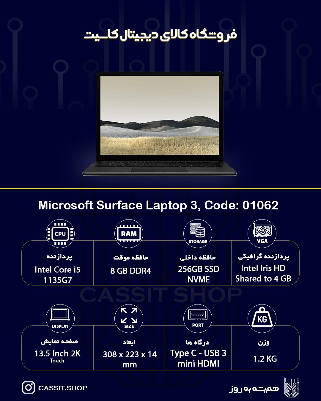 پرسش و پاسخLaptop Microsoft Surface 3 CPU i5 1135G7- SSD 256 GB - RAM 8 GB DDR4 - VGA Intel Iris Shared to 4GB - 13.5 inch Display