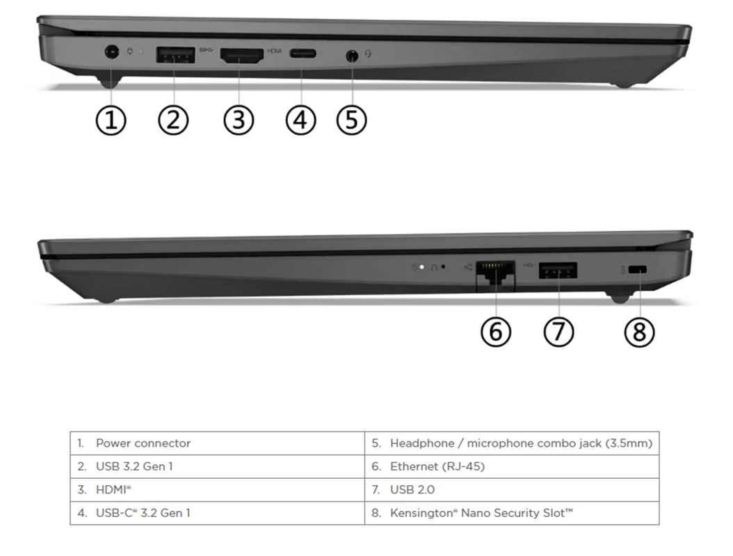 - اتصالات: 2x USB 3.2 Gen 1 Type-A، 1x USB 2.0 Type-A، 1x USB-C، 1x HDMI، 1x RJ-45، و جک 3.5 میلیمتری صوتی.